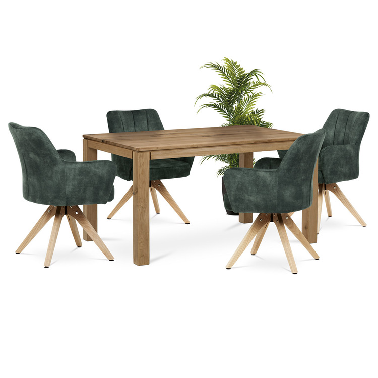 HC-D7188 GRN4 - Stolička jedálenská, otočný mechanizmus 360 °, taštičkové pružiny v sedáku, tmavo zelená látka, noha masív dub