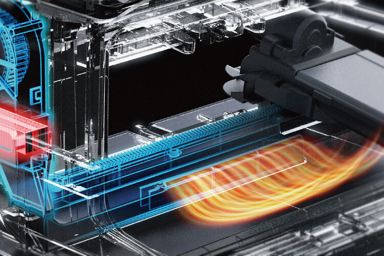 Teplý vzduch prúdi špeciálnym veterným tunelom rovnomerne z LEGEE LuLu na celú plochu mopu, ktorý je tak rovnomerne, rýchlo a úsporne vysušený.