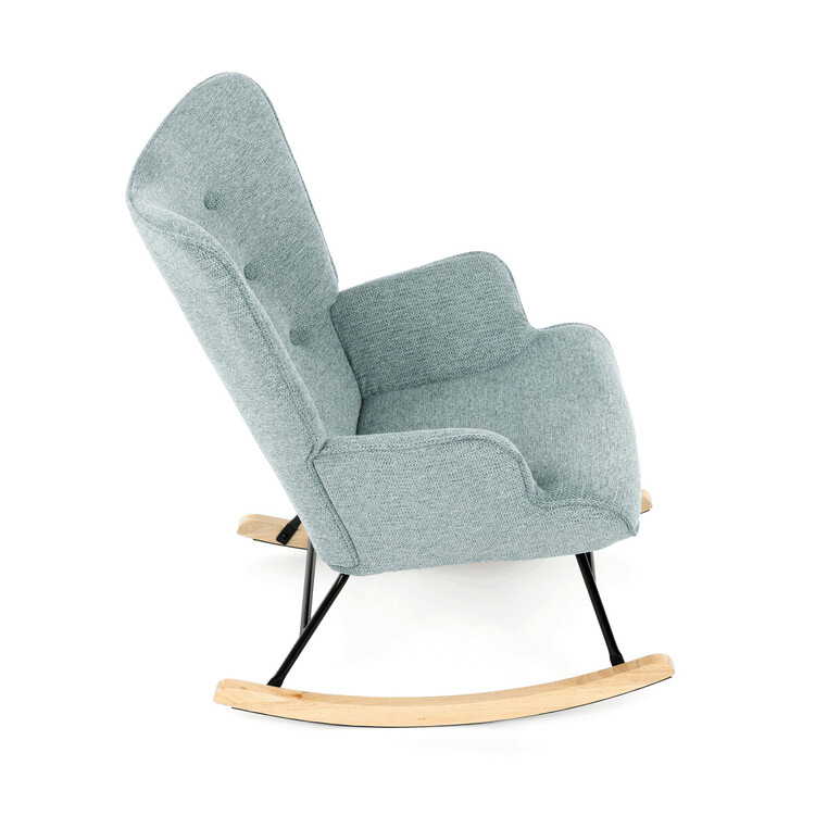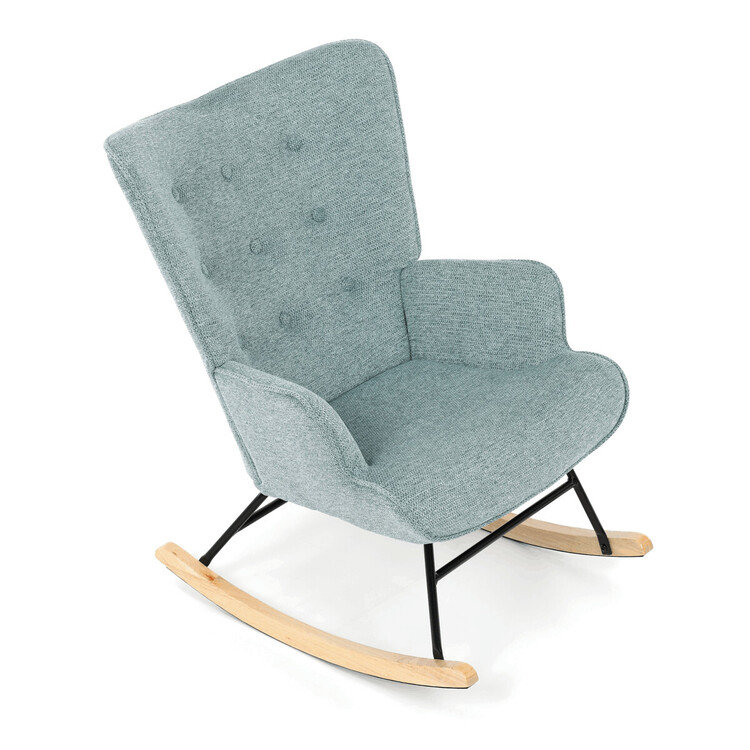 Hojdacie kreslo v modrom prevedení je potiahnuté prémiovou látkou, ktorá ponúka príjemný dotyk a jednoduchú údržbu. Sedák a operadlo sú ergonomicky tvarované pre pohodlné sedenie, doplnené o pevné čalúnené podrúčky. Stabilné nohy sú vyrobené z masívneho kaučukovníka a doplnené... více informací o zboží