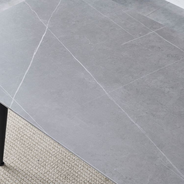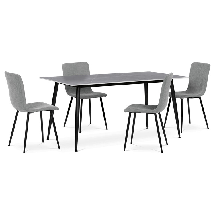 HT-406M GREY - Stôl jedálenský 160x90x76 cm, doska spekaný kameň v imitácii matného mramoru, čierne kovové nohy