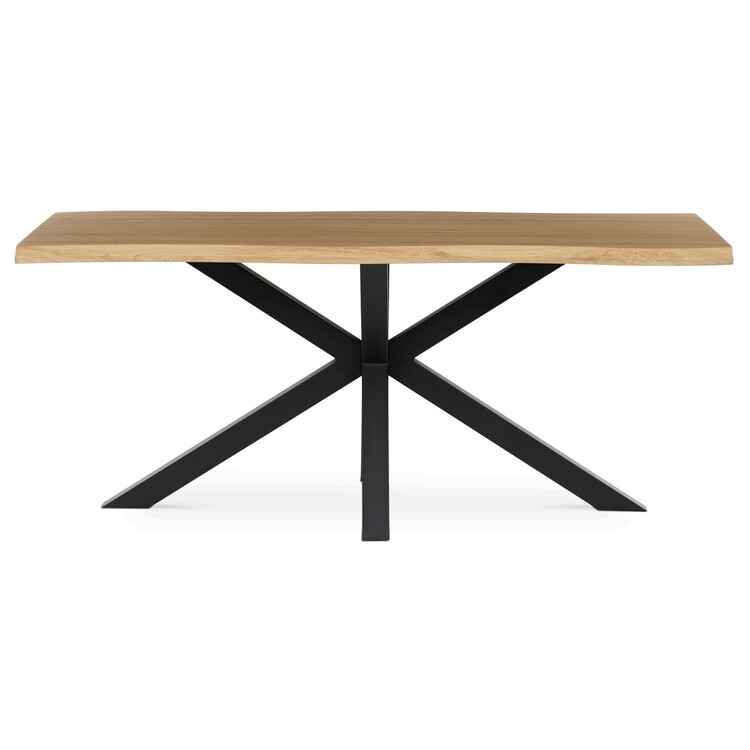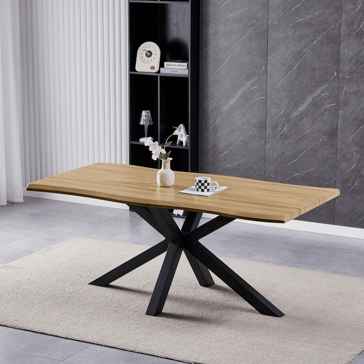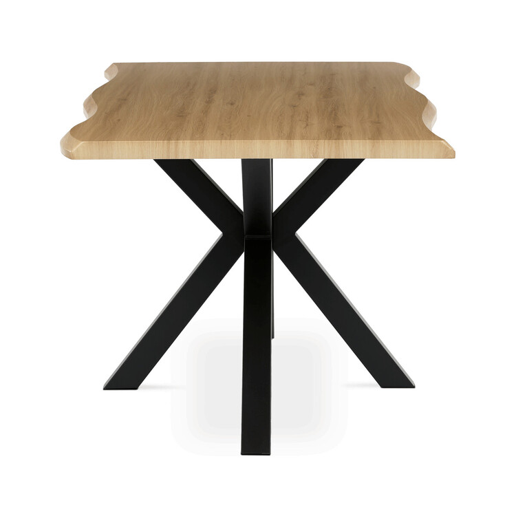 HT-F4618 OAK - Stôl jedálenský, 180x90x75 cm, MDF doska, dekor divoký dub, kovová noha v tvare hviezdy, čierny lak