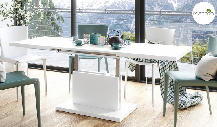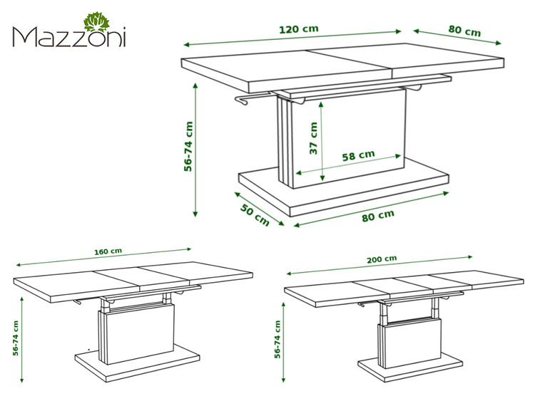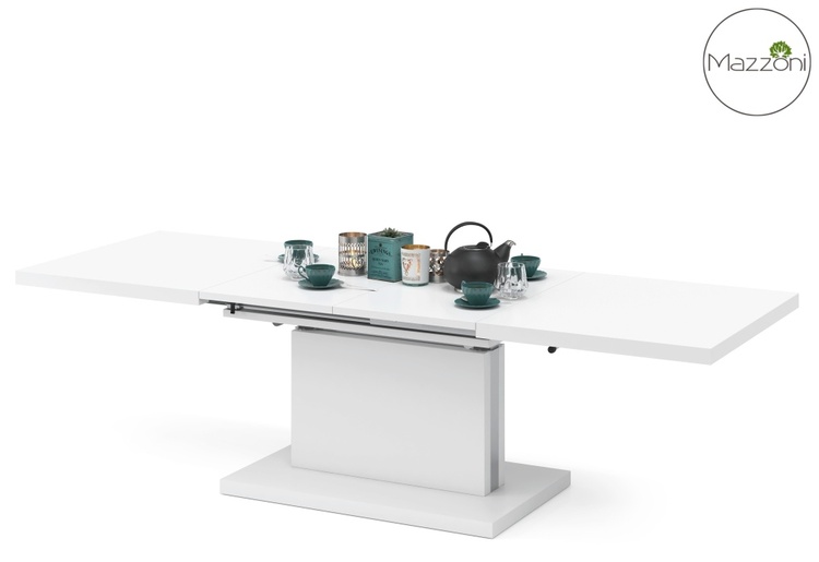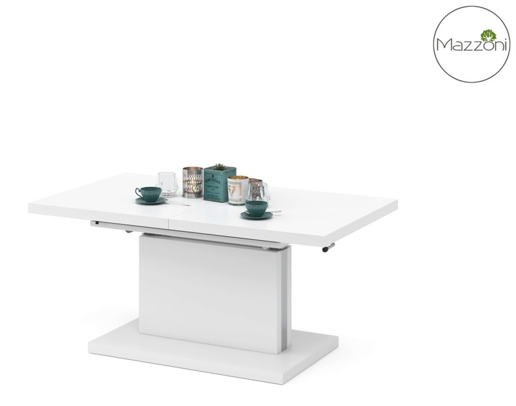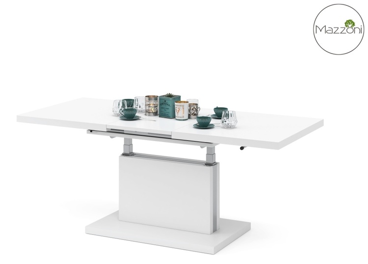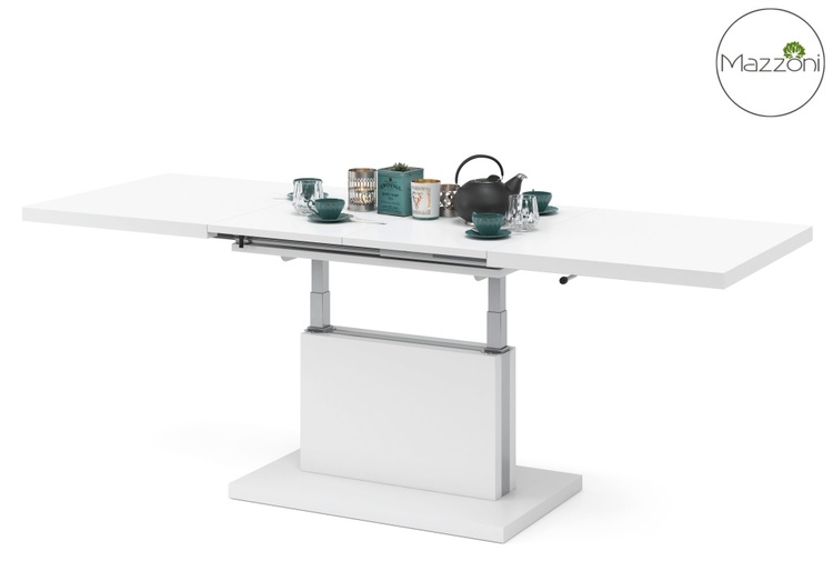 Elegantný a veľmi praktický konferenčný stôl rozložiteľný na jedálenský stôl v modernom poňatí. Vhodný do menších priestorov. Výhodou tohto stola je nastaviteľná nielen výška, kedy po zvýšení a rozklade dosky je možné ho použiť na stolovanie, doska stola je možné 2 x zväčšiť. Základný rozmer pri konferenčnom stole je 80 x 120 x 56 cm, po rozložení výška až 74 cm, dosku stola zväčšíte na 80 x 160 cm alebo 80 x 200 cm. Farebné prevedenie je matná biela. Dodávame v demontovanom stave.