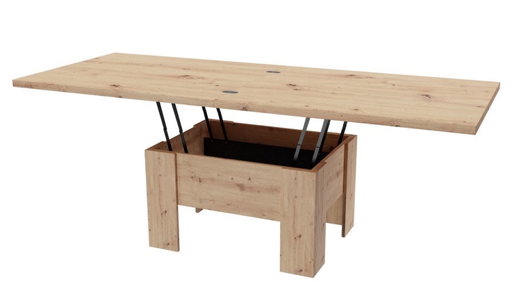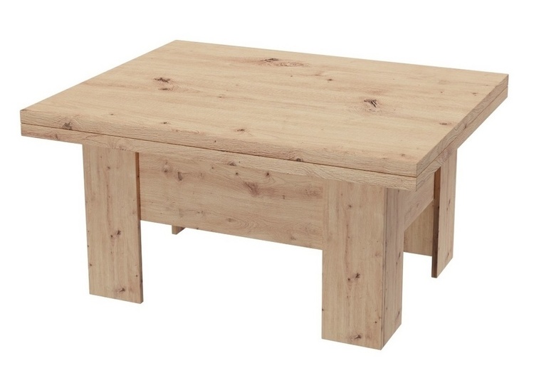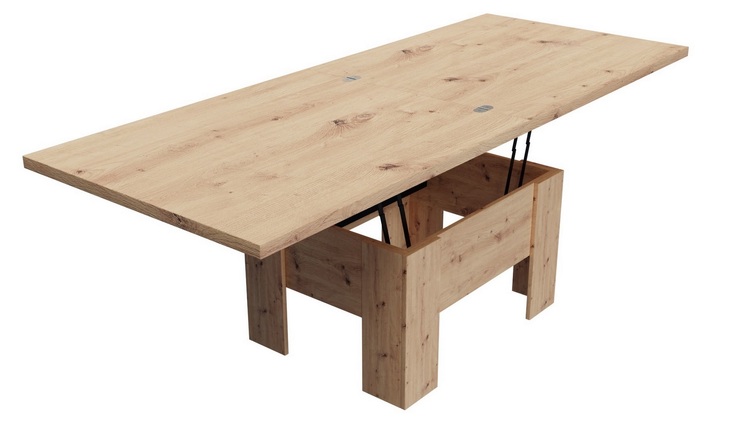 Elegantný konferenčný stôl s funkciou jedálenského stola v modernom poňatí. Výhodou tohto stola je nastaviteľná výška, kedy po zvýšení a rozklade dosky je možné ho použiť na stolovanie. Masívna doska je z LTD 32 mm vybavená ABS páskou 2 mm, otvárací mechanizmus je vysokej kvality. Farebné prevedenie – dub artisan. Plocha pred rozložením je 80 x 100 cm, po rozložení 80 x 200 cm. Výška sa po rozklade z 53 cm zvýši na 78 cm. Dodávame v demontovanom stave.CASA 71004