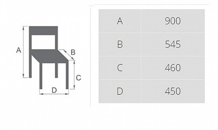 rozmery (šírka 45 cm, výška 90 cm, hĺbka 55 cm a výška sedu 46 cm)