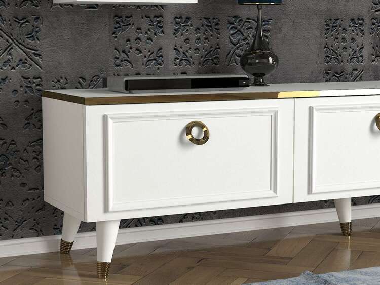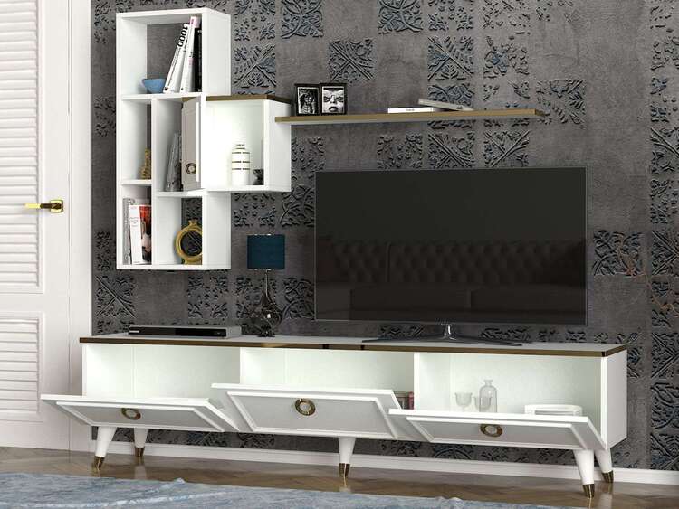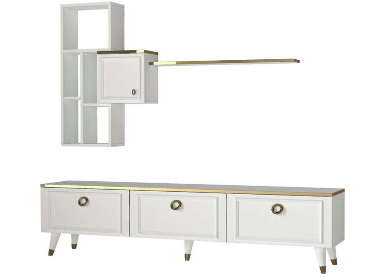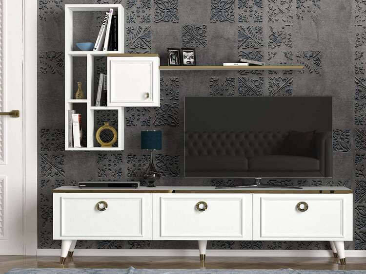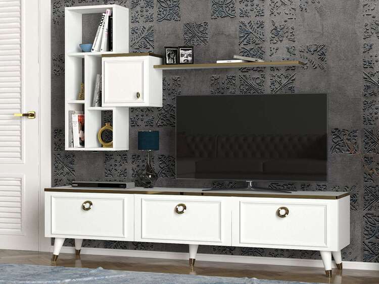Zoznámte sa s elegantnou obývacou stenou, ktorá kombinuje moderný design a praktickú funkčnosť. Jej čisto biela farba a sofistikované línie prinášajú do každej obývacej izby svieži a vzdušný vzhľad.