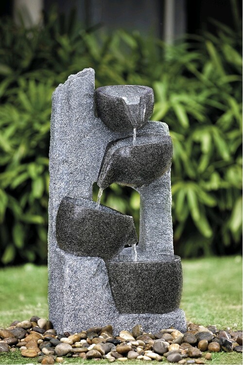 Záhradná fontána Kamenné misky záhradné fontána sp? Elévajícími sa kamennými miskami s LED osvetlením bude rozhodne? p? príjemnou oázou pokoja a pohody vo Vašej záhrad ?. Záhradná fontána je vybavená kvalitnou a veľmi tichú vodné pumpou. Voda steká po jednotlivých miskách, misky sú ProSV? Tlen LED osvetlením. Fontána vytvára? Ie romantickú atmosféru a sv? Telo z vodnej hladiny upútava zvýšenú pozornosť a navodzuje veľmi p? Príjemnou atmosféru. V teplých dňoch je mimo? Riadne? kúzelná vo vo? erních hodinách. Materiál: Polyresin, vodné? Erpadlo, p? Prívodný kábel s trafom 12V, 4x LED osv? Osvetlenie, výška: 89 cm, šíri? ka / hĺbka: 45x30 cm Voda je zdroj života. Voda bola odjakživa symbolom života, vitality, zdravia,? Istoty a hojnosti pre všetky ľudské generácie. Voda v sob? skrýva ohromnú p? prírodné energiu a zásadným sp? sobom ovplyv? uje životné podmienky vo všetkých? častiach sveta. V tečúcou vôd? je silná energia, voda pre? is? uje a obnovuje, vyživuje a zhojuje, zklid? uje a regeneruje. Už p? Ed 5 000 rokmi sa? INSTI taoista? Tí mnísi au narodení v? Novalji d? Kladnému štúdiu vody a jej interakcie na živé bytosti a? Lov? Ka zvláš ?. Túto v? Du pomenovali Feng - Shui (vietor a voda). Fontánky a fontány p? Prinášajú do Vášho p? Íbytku autentický kúsok p prírody a prírodných síl. Ticho tečúca alebo probublávající voda vytvára? Ie uklid? Ujúce atmosféru harmónie a rovnováhy krajinských element ?. Každá takáto p? Prírodné fontánka dokáže čitateľné? zmeni? alebo úplne? eliminovať negatívnu energiu v okolí a navodiť atmosféru harmónie mysli ap? prirodzené? relaxa? nej prostredí. Tieto vodné fontánky sú zárove? nevtieravým dekoratívnym prvkom Vašich záhrad a domácností, ale sú vhodné aj pre spolo? enské priestory (hotely, reštaurácie,? ekárny, atp. ...),alebo obchodné priestory (kancelárie? e, ordinácie, predajne, atp. ...) . Každý a to aj menej? citlivý jedinec pocíti v blízkosti t? chto vodných fontánok uklid? ujúce energiu. Tento wellness efekt je vytvori? En na základ? fyzikálneho procesu - ionizácie vzduchu. Aj tieto malé fontánky dokážu produkovať dostato? Ný ioniza? Nej efekt v akejkoľvek miestnosti. Tečúca voda zachytáva mechanické aj organické? Astice, ktoré sa vone? pohybujú vzduchom a tým "filtrujú" dýchateľný vzduch od t? chto prachových nie? istôt, ktoré by inak RLP? ly na sliznicu dýchacieho traktu a dráždili by ju ku kašľu alebo k sťaženému dýchaniu Navyše bolo preukázané, že pravidelný pobyt v miestnosti s takto upraveným vzduchom odbúrava stress, blahodarné? p? sobie na psychiku,