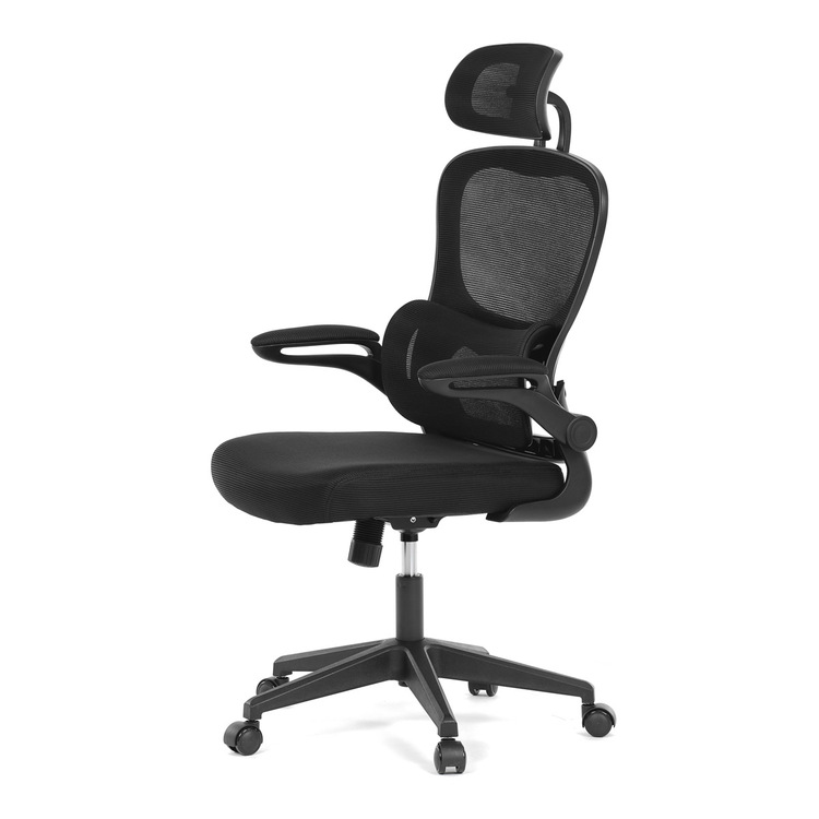 Elegantná kancelárska stolička so vzdušným operadlom a podhlavníkom je presne to, čo ste hľadali. Celoplastový operadlo so stredovou výstuhou je potiahnutý sieťovinou MESH. Príjemný polstrovaný sedák je čalúnený čiernou látkou MESH. Vaše pohodlie je pre nás to najdôležitejšie, a preto má táto stolička elegantné a výškovo nastaviteľnú opierku hlavy, ktorá je potiahnutá sieťovinou a vďaka tomu je dokonale priedušná. Stolička je ďalej vybavená výškovo nastaviteľnou, príjemne polstrovanou bedrovou opierkou, ktorá je čalúnená čiernou látkou MESH.