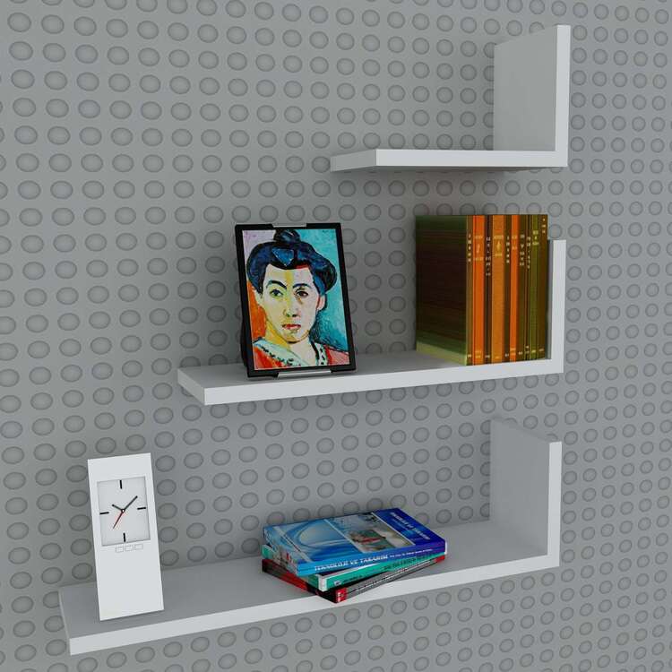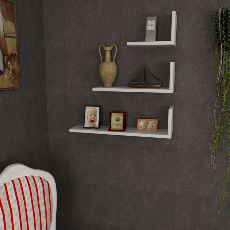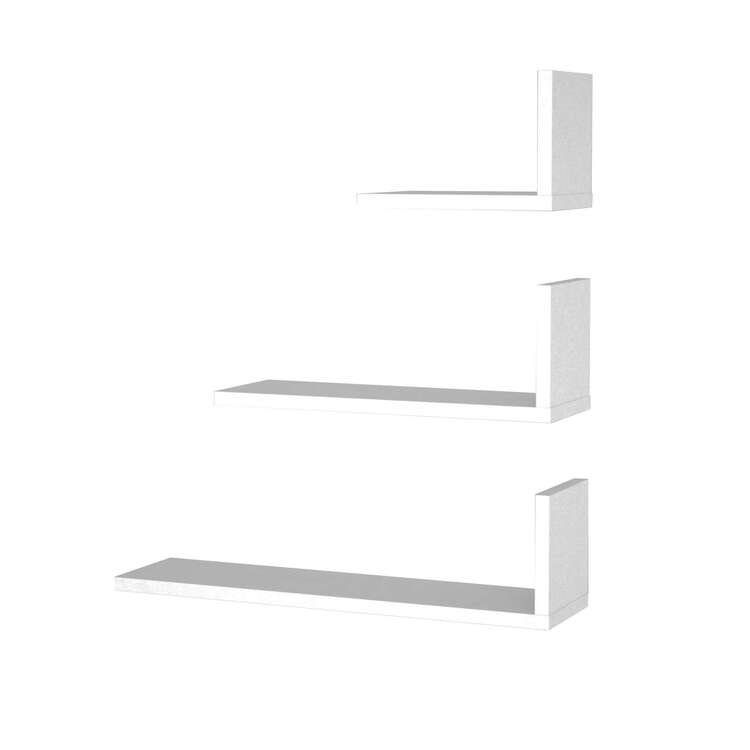 Nástenná polica je vyrobená z kvalitného materiálu LTD s hrúbkou 18 mm, čo zaisťuje jej dlhú životnosť a stabilitu. Táto sada troch políc v obdĺžnikovom tvare a elegantnom dizajne v bielej farbe sa perfektne hodí do akéhokoľvek interiéru, pričom dodáva moderný a svieži nádych. Poličky sú ideálne na vystavenie vašich obľúbených predmetov a organizácii priestoru v obývacej izbe alebo spálni.