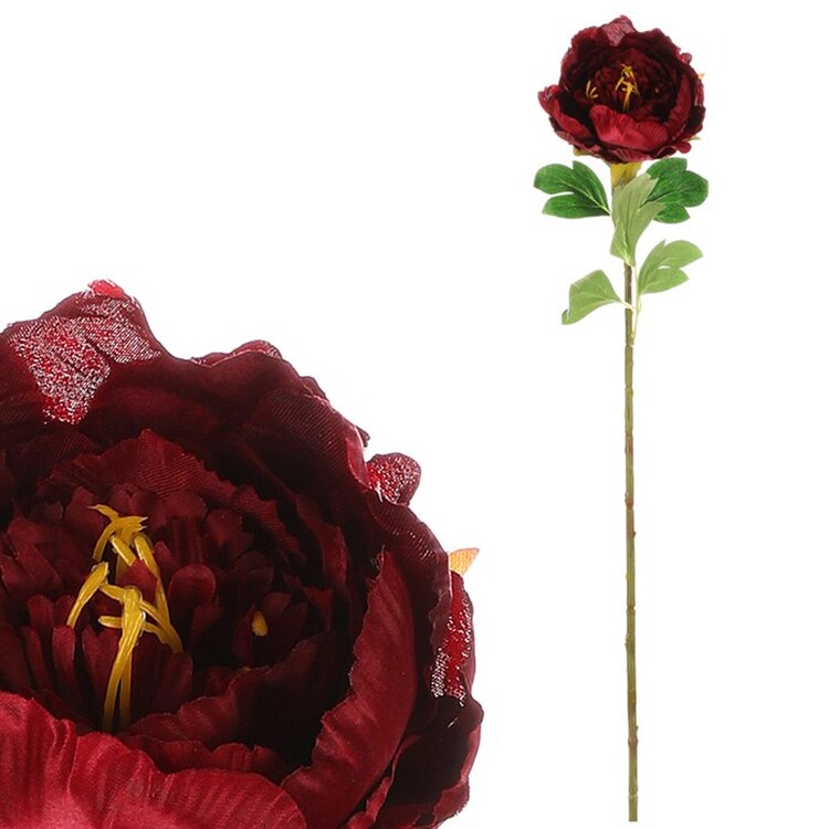 Túžite po kvetinovej výzdobe, ktorá vyzerá skvele a zároveň vydrží veľmi dlhú dobu rovnako sviežu? V tom prípade bude pre Vás variant umelej rezané kvety, napríklad v podobe jednokvetej pivonky v bordovej farbe tou ideálnou voľbou. Výzdoba zo živých rastlín väčšinou vydrží v plnej kráse iba niekoľko dní, čo u tejto nehrozí. Je vysoko vydarenou kópiou živej varianty a predstavuje rezanú časť rastliny v plnom kvete, čo nie je jednoduché v takej miere mnohokrát vôbec docieliť. Nemusíte sa ani viazať na ročné obdobie, kedy práve táto rastlina kvitne a môžete si tak vychutnávať jej krásu po celý rok. Vneste si do svojho obľúbeného priestoru, alebo pre významnú udalosť, prvky prírodnej romantiky, sviežosti a farebnosti s týmto umelým rezaným kvetom, prípadne kombináciou s ďalšími druhmi z našej pestrej ponuky.