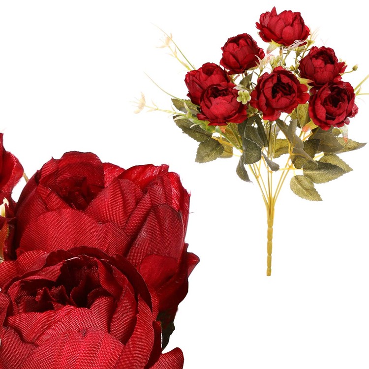 Predstavte si trvalú krásu kvetov, ktoré vydržia v plnom kvete a nepotrebujú žiadnu starostlivosť. Naše dekoračné umelé červené pivonky v kytici sú dokonalou voľbou pre tých, ktorí si želajú mať, či darovať sviežosť a eleganciu prostredníctvom kvetov, ktoré nikdy neuvädnú. Vzhľad kytice je vďaka svojmu prevedeniu a dôrazom na detaily s použitím kombinácie plastu a textilu veľmi realistický. Môžete si naplno a natrvalo vychutnávať krásu kvetov v akomkoľvek ročnom období. Vďaka širokému sortimentu rôznych ďalších druhov umelej kveteny v našom portfóliu sa ponúka množstvo možností, ako ich kombinovať podľa udalosti, či vkusu a dekoratívneho štýlu. S našimi umelými kyticami získate vy, či obdarovaný, trvalú kvetinovú výzdobu, ktorá so sebou prináša nekončiacu radosť a potešenie.