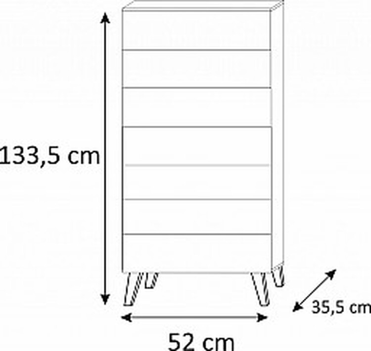 Vysoká komoda o rozmere: š. 52 x vyššie. 133,5 x hl. 35,5 cm.
