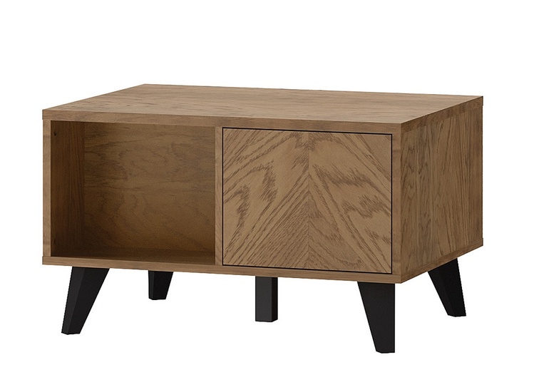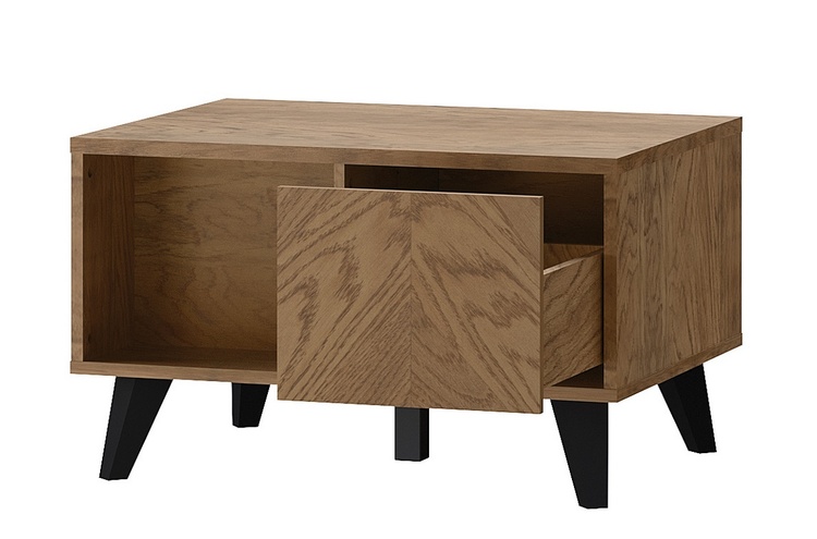 Konferenčný stolík so zásuvkou v nadčasovom prevedení. Korpus je vyrobený z prírodnej dyhy vo farbe dub rustikálny, dvierka sú vyrobené z masívu v kombinácii s prírodnou dyhou v zaujímavom dekore rybia kosť v prevedení dub rustikálne olejovaný. Nôžky sú kovové vo farbe čierna mat. Zásuvka... více informací o zboží
