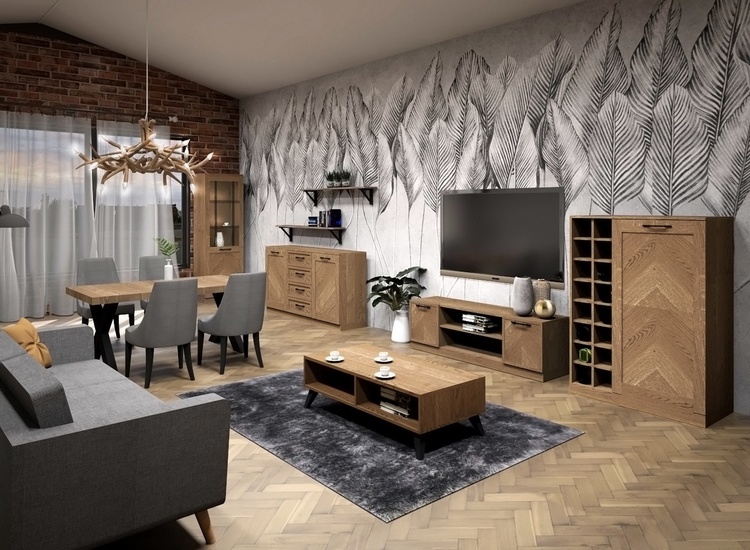 Konferenčný stolík so zásuvkou v nadčasovom prevedení. Korpus je vyrobený z prírodnej dyhy vo farbe dub rustikálny, dvierka sú vyrobené z masívu v kombinácii s prírodnou dyhou v zaujímavom dekore rybia kosť v prevedení dub rustikálne olejovaný. Nôžky sú kovové vo farbe čierna mat. Zásuvka disponuje systémom tichého dovierania. Dodávame už v zmontovanom stave.CASA 75098