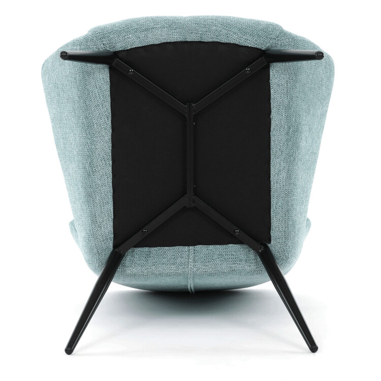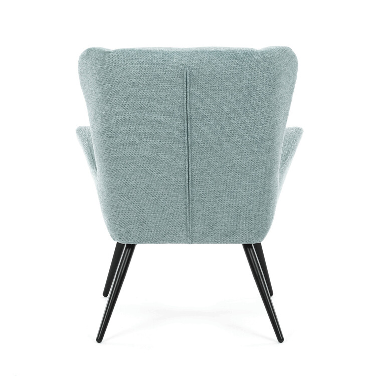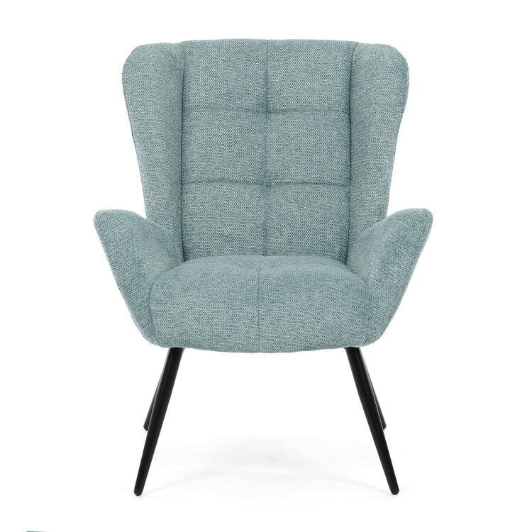 Kreslo ušiak v svetlo modrom prevedení ponúka pohodlie vďaka vysokému polstrovaniu sedadla i operadla, ktoré je potiahnuté prémiovou látkou s príjemnou textúrou. Pevná kovová podnož v matnej čiernej farbe zaisťuje stabilitu a dlhú životnosť. Ergonomicky tvarované podrúčky dopĺňajú komfort pri sedení a podporujú správnu oporu paží. Dizajn kresla kombinuje klasický tvar ušiaka s moderným minimalistickým vzhľadom, čo umožňuje jeho využitie v rôznych typoch interiérov. Kreslo nie je rozkladacie ani otočné, čo podčiarkuje jeho pevnú a stabilnú konštrukciu.