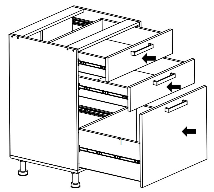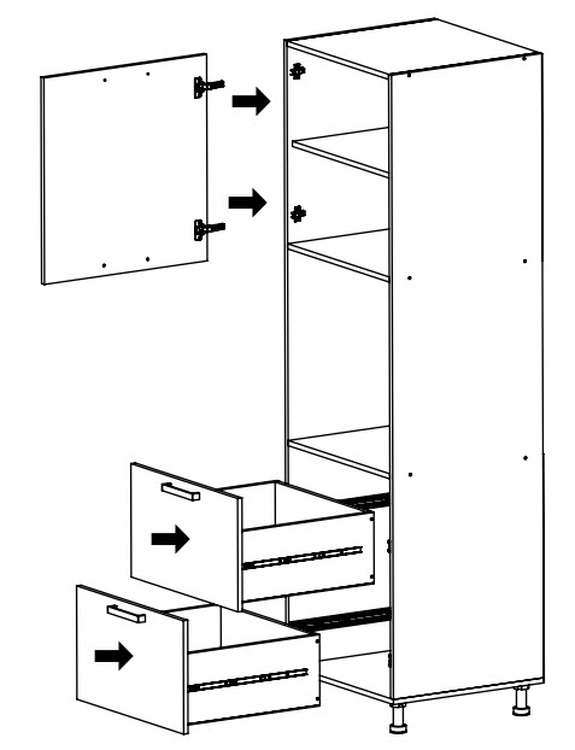 - 60 cm vysoká skriňa na vstavanú rúru s dvoma zásuvkami a dvierkami (výška 214 cm)