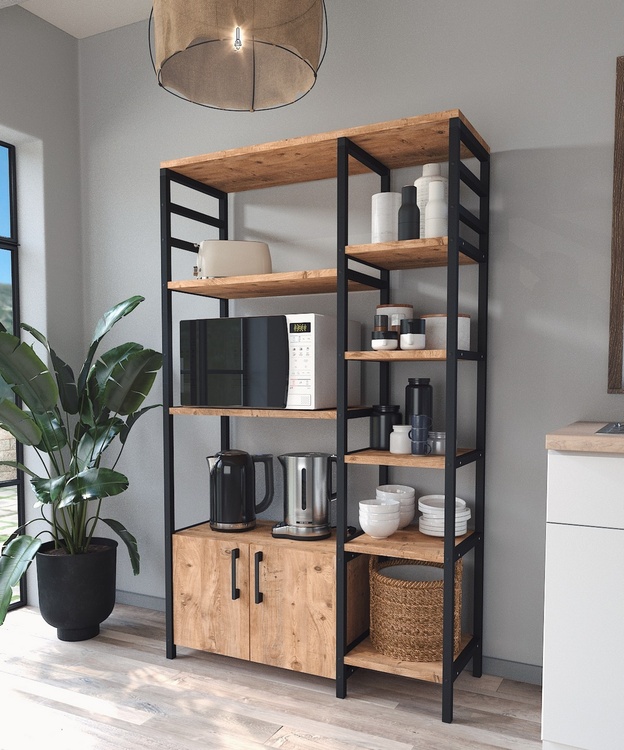 Kuchynský regál 2D RONSE borovica/čiernaKuchynský regál 2D RONSE borovica/čierna