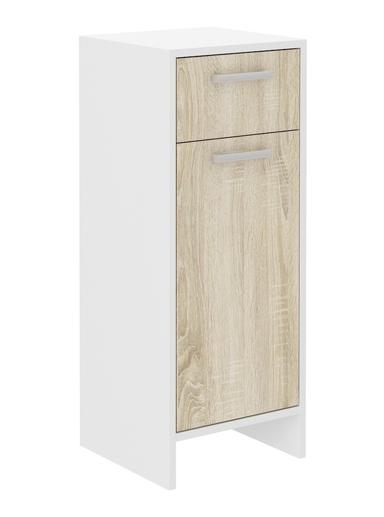 Zostava do kúpeľní, štýlová a zároveň vhodná do moderných interiérov. Korpus aj dvierka sú vyrobené z dosky LTD 16 mm potiahnuté PVC fóliou vo farbe biela/dvierka v dub sonoma. Zadná strana je zo sololitu. Úchyty sú plastové. Skladá sa (šxvxh) - 1-dverová skrinka dolná so zásuvkou (34x86,3x32... více informací o zboží
