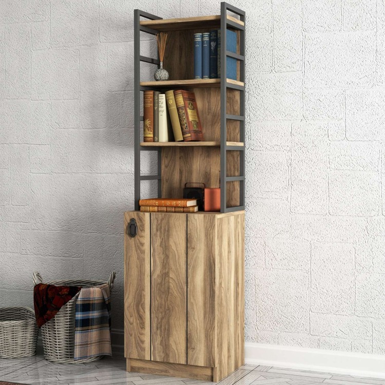 Regál vyniká svojim moderným dizajnom a praktickým usporiadaním, ktoré je ideálne na skladovanie kníh, dekorácií alebo kancelárskych potrieb. Tri pevné police a praktická skrinka poskytujú dostatok úložného priestoru. Kombinácia LTD materiálu s hrúbkou 18 mm a kovu zaisťuje dlhú životnosť a stabilitu tohto regálu.