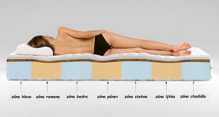 Matrac má tak 7 anatomických, optimálne rozložených zón, čím sa lepšie prispôsobí tvaru tela.