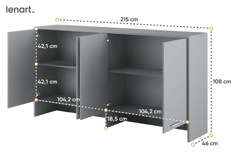 Nádstavec CP-11 sivý k výklopnej posteli CP-06. Nádstavec má 4 dvierka. Nábytok je vyrobený z kvalitného lamina s ABS hranou. Lamino je odolné proti poškriabaniu, poškodeniu, vlhkosti a vysokým teplotám. Dodávame v demontovanom stave.CASA 73005