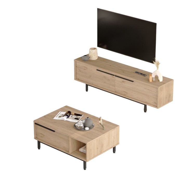 ponúka dokonalú kombináciu praktickosti a štýlu. Televízny stolík poskytuje dostatok priestoru pre elektroniku a multimediálne zariadenia, zatiaľ čo konferenčný stolík je ideálnym miestom na odkladanie kníh, občerstvenia alebo dekorácií. Elegantný dizajn a precízne spracovanie zaisťujú, že táto zostava sa stane stredobodom vašej obývačky.