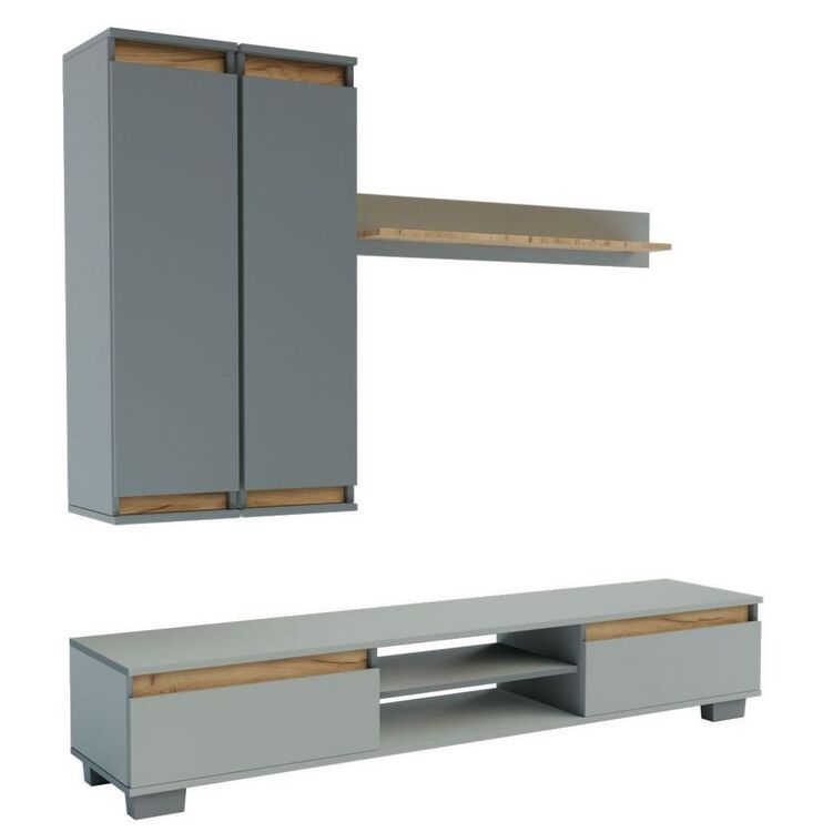 Lacná obývacia stena v modernom farebnom prevedení sa stane výrazným prvkom každej miestnosti. Kombinácia šedej činčila farby s dekoračnými lištami z MDF farby dub kraft zlatý. Nábytok je vyrobený z kvalitného lamina hraneného melanínom. Zostava sa skladá z ( šírka / hĺbka / výška ) - televízny... více informací o zboží