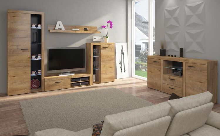 Moderná obývacia stena, ktorá si zakladá na najnovších trendoch bývania. Nábytok je vyrobený z kvalitného lamina. Zostava sa skladá z ( šírka / hĺbka / výška ) - TV stolík ( 120 × 40,3 × 31,5 cm ),vysoká vitrína ( 75 × 33,9 × 190 cm ),nízka vitrína ( 75 × 33,9 × 117 cm ) a police. Korpus aj dvierka sú vo farbe dub lefkas. Táto stena sa predáva ako zostava, jednotlivé diely nemožno kúpiť zvlášť. Vo vitrínach sú sklenené police. LED osvetlenie nie je v cene, možnosť dokúpenia. Dodávame v demontovanom stave.CASA 87008