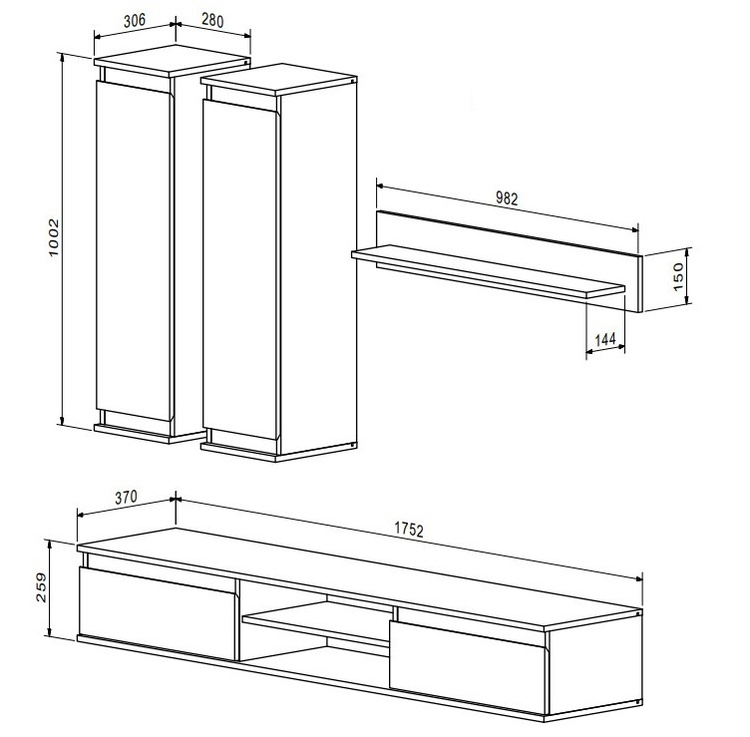Obývacia stena sa vyznačuje štýlovým dizajnom a moderné farebné prevedenie ozdobí vašu obývaciu izbu. Zostava sa skladá - televízny stolík- výška/šírka/výška - 29/175/37 cm (dvoje výklopné dvierka),police - šírka - 99 cm a 2x závesné skrinky - výška/šírka/výška - 100/30/28 cm (vnútri dve... více informací o zboží