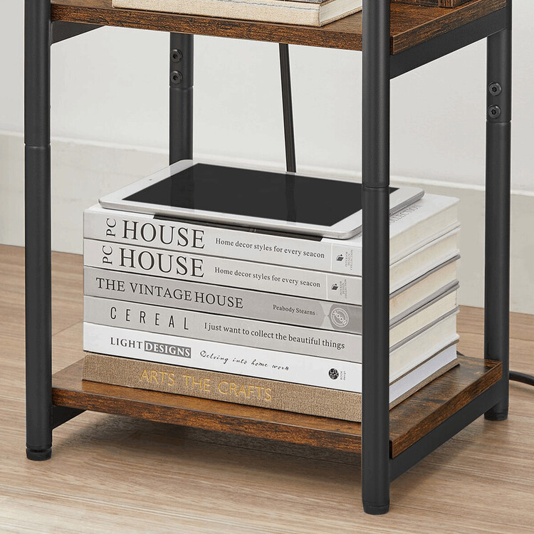 Odkladací stolík s elektrickou zásuvkou a USB konektorom kombinuje praktické využitie s industriálnym dizajnom v dekore old wood. Doska a police sú vyrobené z MDF s hnedým povrchom, ktorý verne imituje štruktúru dreva, zatiaľ čo pevné kovové nohy s práškovým lakom zaisťujú stabilitu a dlhú životnosť. Stolík ponúka otvorený odkladací priestor a spodnú policu na uskladnenie drobností, pričom rektifikačné nohy umožňujú vyrovnanie na nerovnom povrchu. Integrovaná elektrická zásuvka a USB port poskytujú pohodlné napájanie elektroniky priamo pri stole. Kompaktné rozmery 30 × 34 × 58 cm uľahčujú umiestnenie v rôznych typoch interiérov.