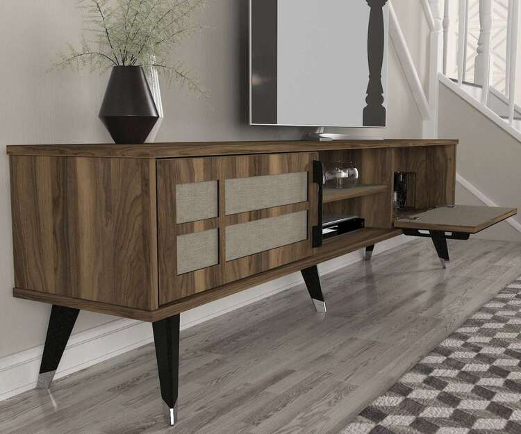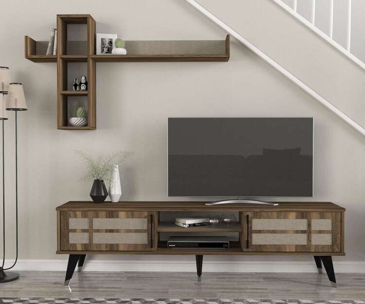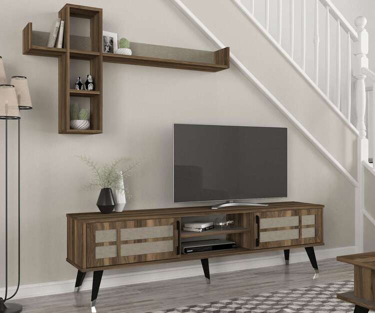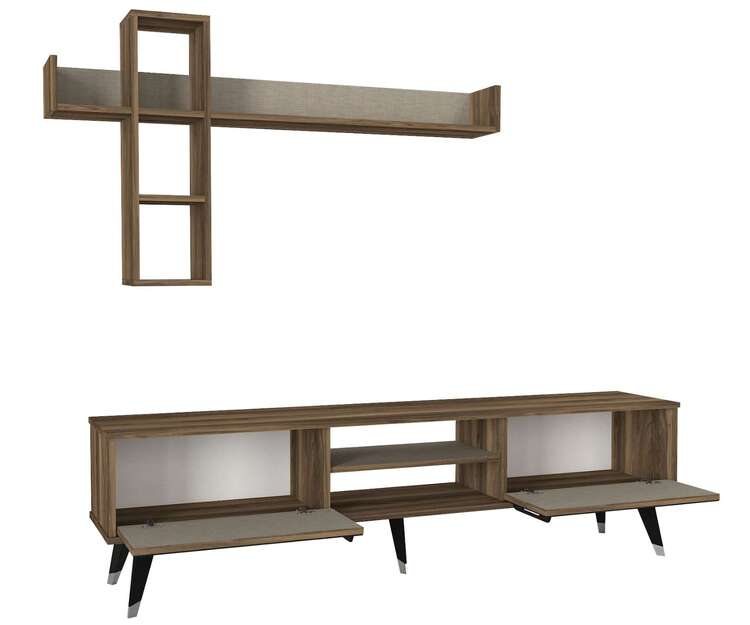 Zoznámte sa s obývacou stenou, ktorá predstavuje vrchol luxusu a designu. Táto zostava kombinuje bohatý orechový dekor s prvkami textilu, čím vytvára nielen funkčné, ale aj vizuálne ohromujúce centrum vašej obývačky.