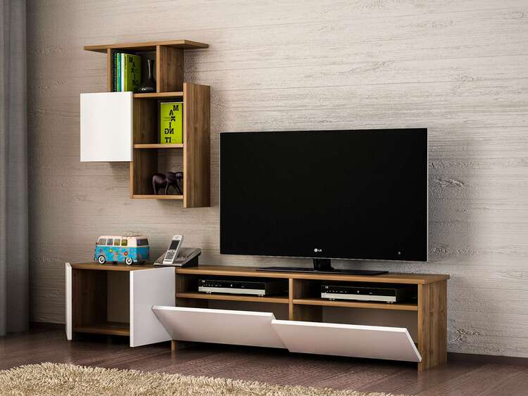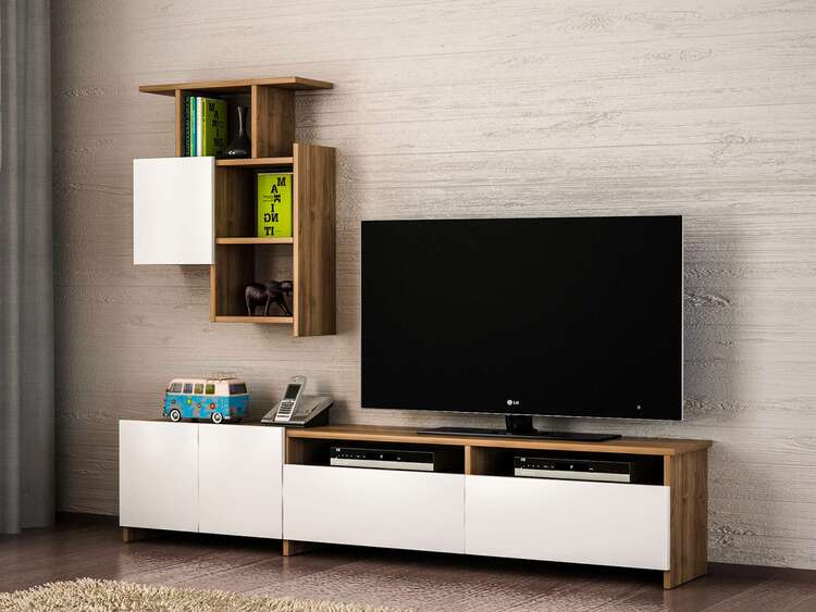 Predstavujeme obývaciu stenu, ktorá kombinuje klasickú eleganciu s modernými prvkami. S jej čisto bielou farbou a akcentmi orechového dreva je táto zostava navrhnutá tak, aby priniesla do vašej obývačky nielen štýl, ale aj funkčnosť.