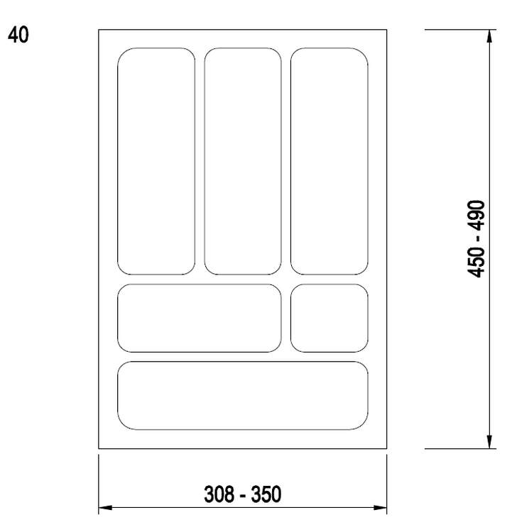 Plastový príborník určený pre vloženie do zásuvky. Príborník je určený pre skrinku o vonkajšom rozmere 40 cm. Plastový príborník je možné rozmerovo upraviť (orezať) na požadovaný rozmer, aby presne vyplnil priestor vo vnútri zásuvky. Vynikajúca kvalita spracovania. Požadovaný rozmer pre orezanie je nutné uviesť do poznámky v objednávke.