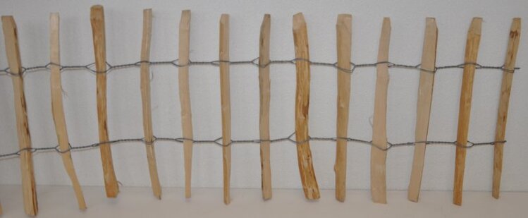 Plôtik zo štiepaného dreva zviazaný silným oceľovým drôtom. | Výška plotu je 50 cm.