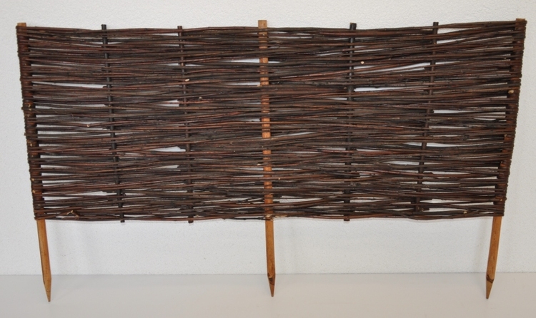 Plôtik z vŕbového prútia. | Materiál plôtika je prírodný vŕbové prútie zapletené medzi upevňovacie drevené kolíky.
