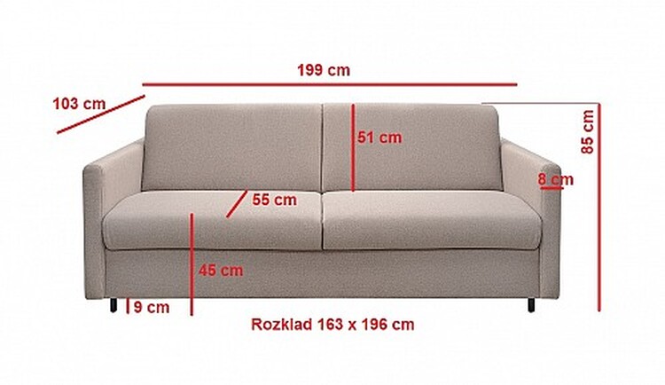 steny, rozklad 163 × 196 cm (celková dĺžka po rozložení je 212 cm).