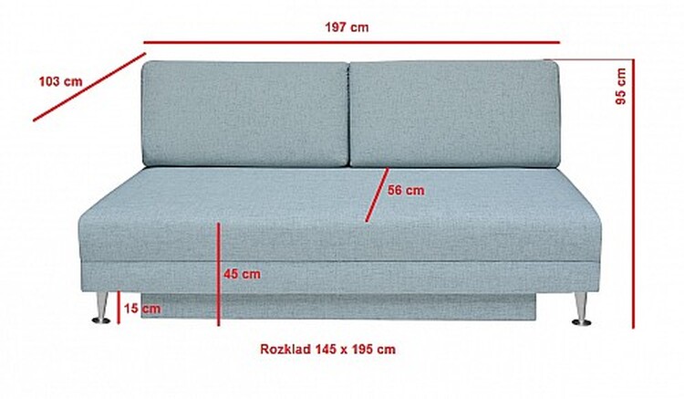 Rozkladanie bez odsúvania od steny. Rozklad 145 × 195 cm. Vankúše