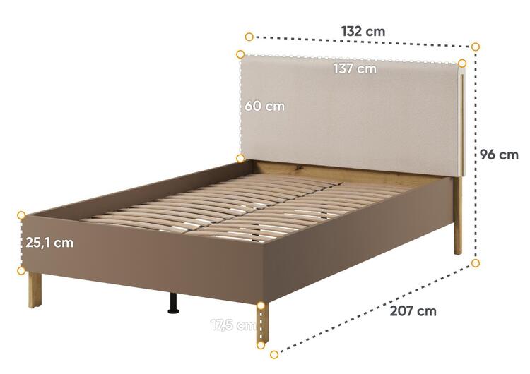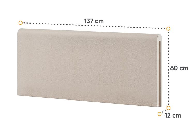 Polstrovaný záhlavník k posteli (LY-08) pre väčší komfort postele. Rozmery viď obrázok. Vyrobený je z polyuretánovej peny (PUR) potiahnutý látkou Naomi 3417 v béžovom odtieni.