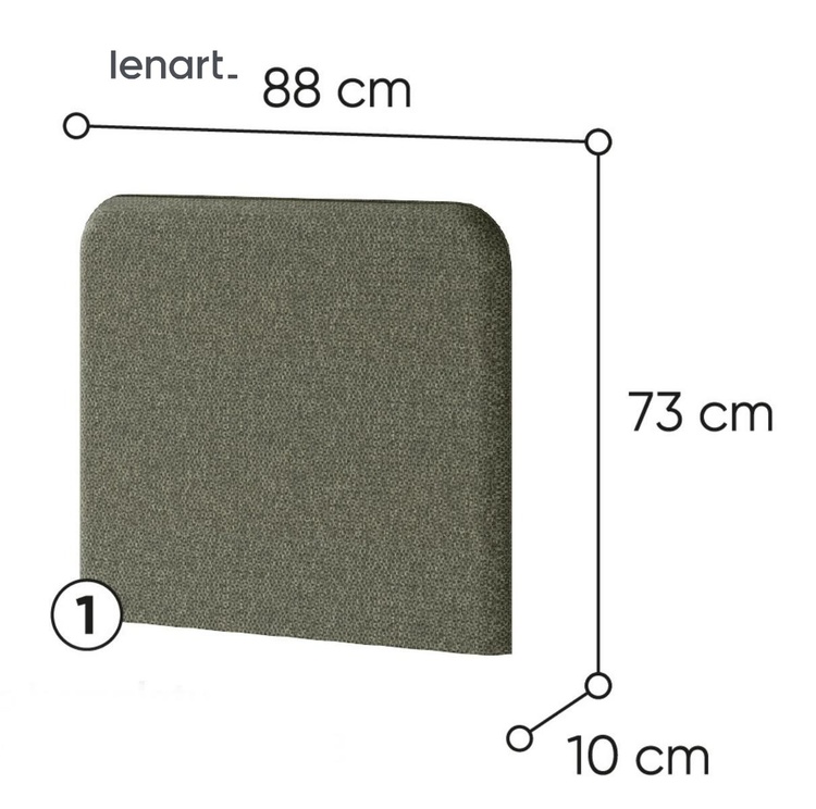 Komfortný polstrovaný záhlavník k vysokej posteli širokej 90 cm Bed Concept pre väčšie pohodlie. Rozmery viď obrázok. Vyrobený je z pevnej polyuretánovej peny (PUR) potiahnutý látkou 100% PES LUKKA 38 vo farbe šedozelená. V ponuke máme aj iné farebné prevedenie.