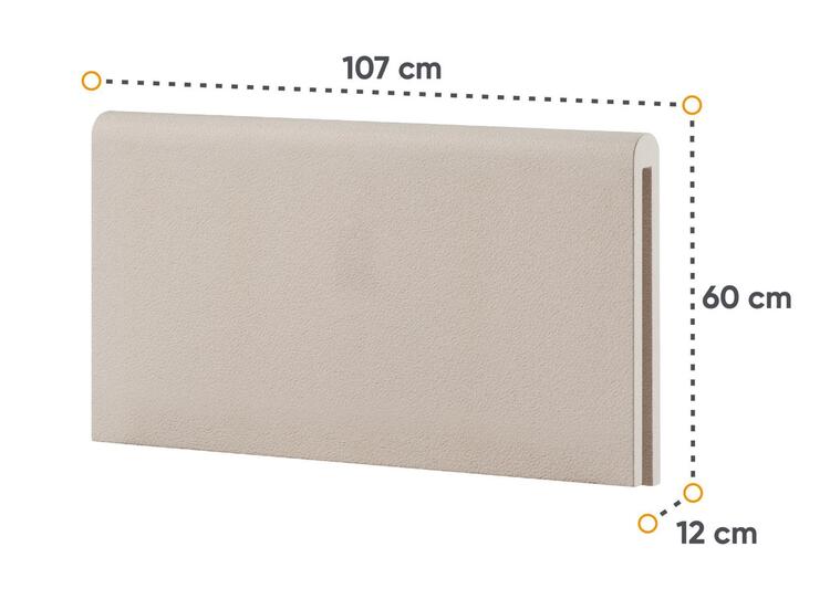 Polstrovaný záhlavník k posteli (LY-10) pre väčší komfort postele. Rozmery viď obrázok. Vyrobený je z polyuretánovej peny (PUR) potiahnutý látkou Naomi 3417 v béžovom odtieni.