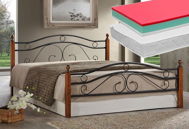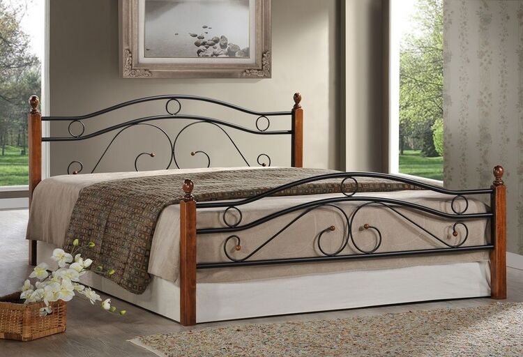 elegantná posteľ v klasickom štýle. Zaujímavá kombinácia kovu a dreva. Kvalitné masívne drevo je vo farebnom prevedení dub divoký. Rám je kovový, tak ako aj originálne mreže v čiernej farbe na prednom aj zadnom čele. Drevené lamely sú vsadené do kovového rámu postele. Rošt v cene. Výška roštu od zeme je cca 33 cm. Dodávame v demontovanom stave.CASA 95178+63015