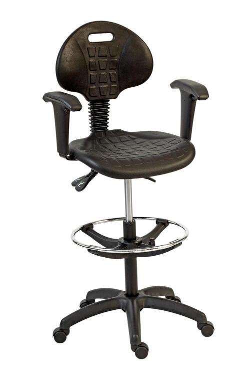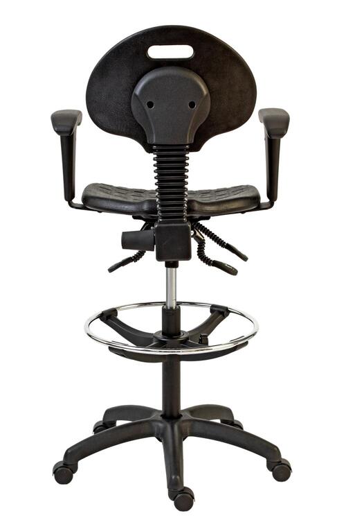 Stolička 1290 PU ASYN 5050 - pracovná stolička s polyuretánovým sedadlom a operadlom s nastaviteľnou výškou a asynchrónnym mechanizmom. Dielenská stolička má plastový kríž a plynový piest. Uvedená cena je bez podrúčok. Voliteľné podrúčky BR25 viď ponuka - príbuzné tovaru. Stolička je vybavená kolieskami a výškovo nastaviteľným Extend. Stoličku je možné objednať aj s klzáky, uvedené výšky sú potom o 2,5 cm nižší. Prípadný požiadavka napíšte do poznámky v objednávke. Nosnosť 100 kg. Zákazková výroba.
