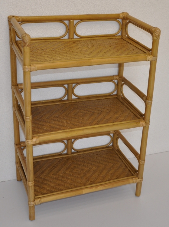 Ratanový nábytok - ratanová polica 3 poschodia. Konštrukcia i výplet sú z prírodného ratanu. více informací o zboží