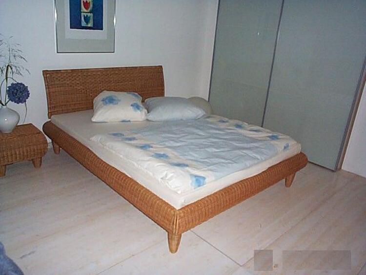Posteľ s pevnou drevenou konštrukciou a opletením z prírodného ratanu. | Posteľ dodávame v demontovanom stave.