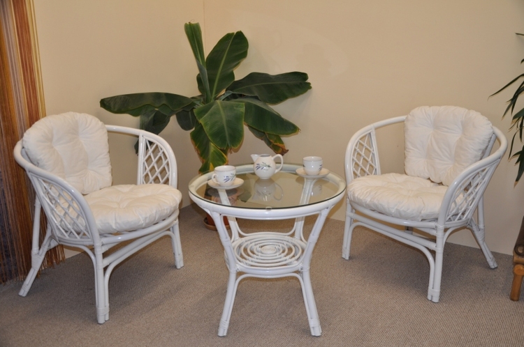 Ratanová sedacia súprava Bahama biela 2+1, polstre biele