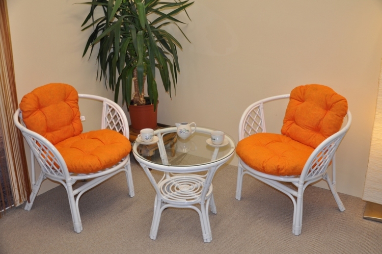 Ratanová sedacia súprava Bahama biela 2+1, polstre oranžový melír