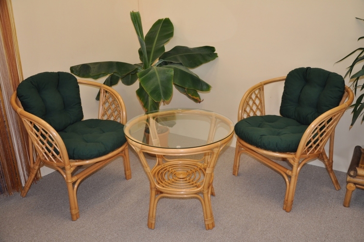 Sedacia súprava Bahama patrí stále medzi najobľúbenejšie ratanové sedacie súpravy. Súprava sa skladá z dvoch kresiel, stolíka so sklenenou doskou a kompletnej sady polstrov. | Farba ratanovej konštrukcie je medová.