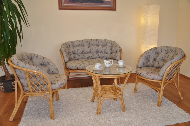 z prírodného ratanu s farbou konštrukcie v medovom odtieni. Súprava