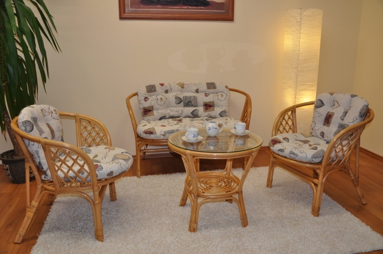 z prírodného ratanu s farbou konštrukcie v medovom odtieni. Súprava