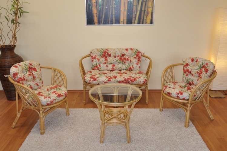 Ratanová sedacia súprava Bahama medová veľká polstre motív vlčej maky