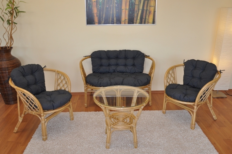 z prírodného ratanu s farbou konštrukcie v medovom odtieni. Súprava